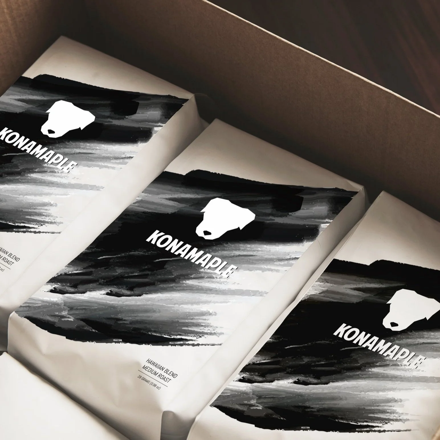 Branding and packaging for dog-friendly coffeehouse and roasters, KonaMaple.